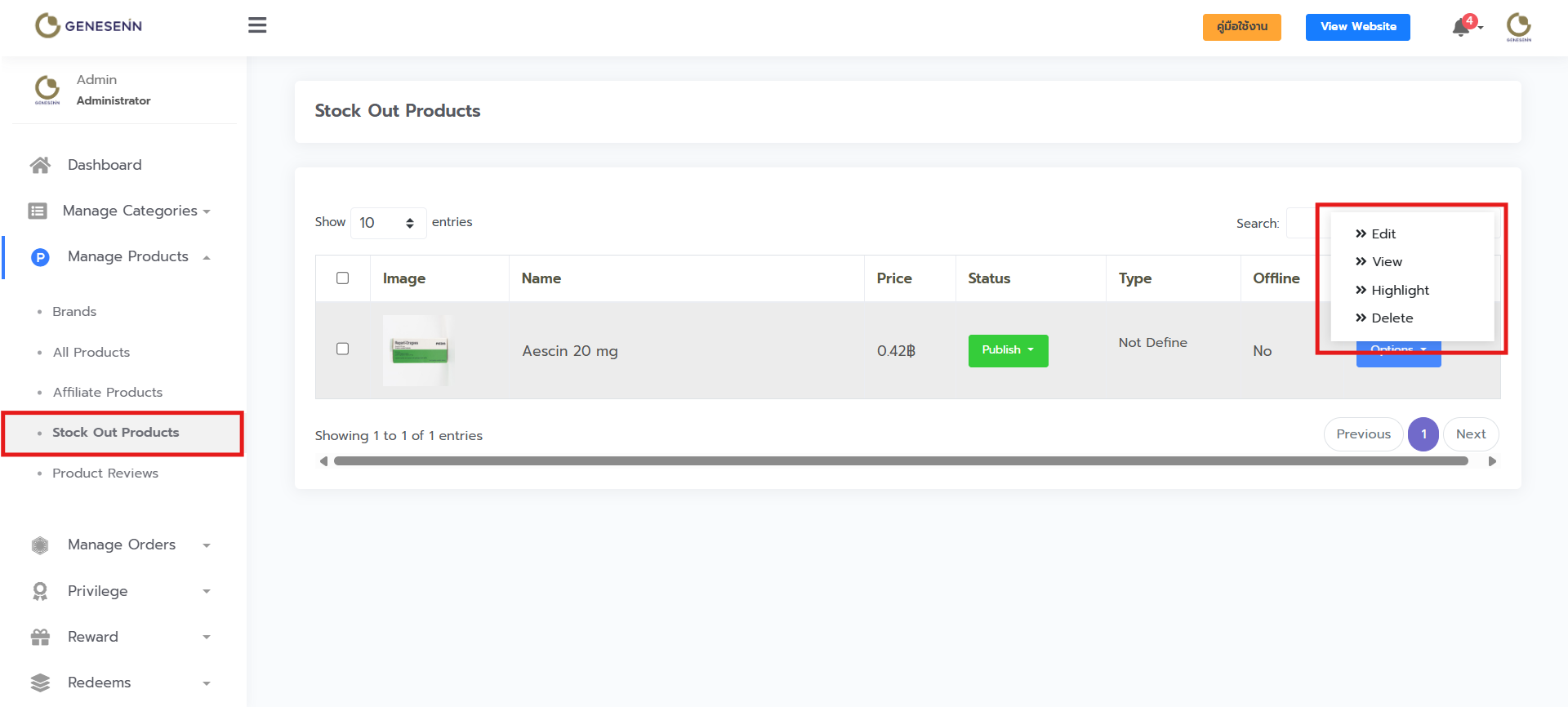 - เลือก Stock Out Products