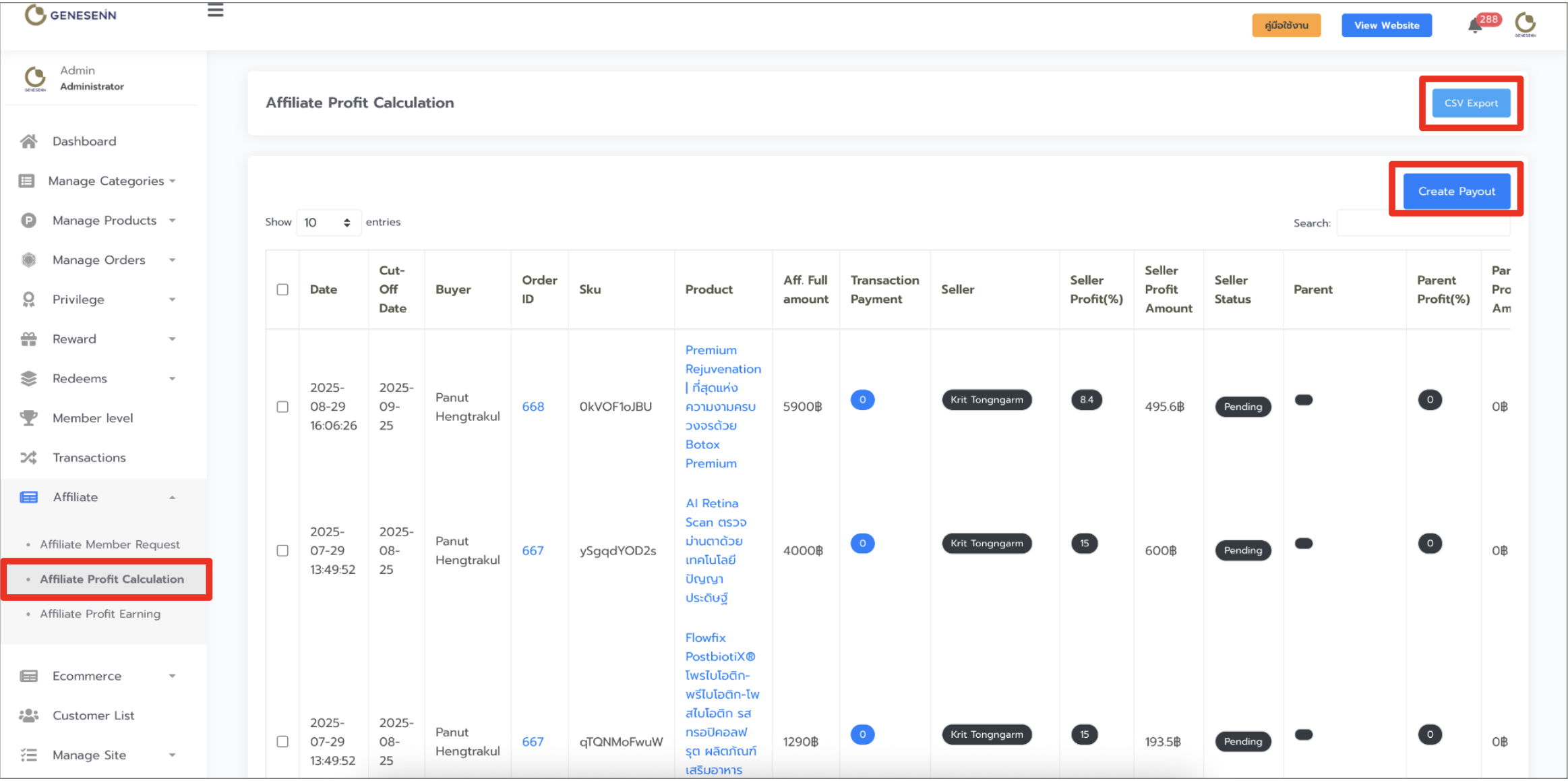 สามารถดู Affiliate Profit Calculation ได้โดย