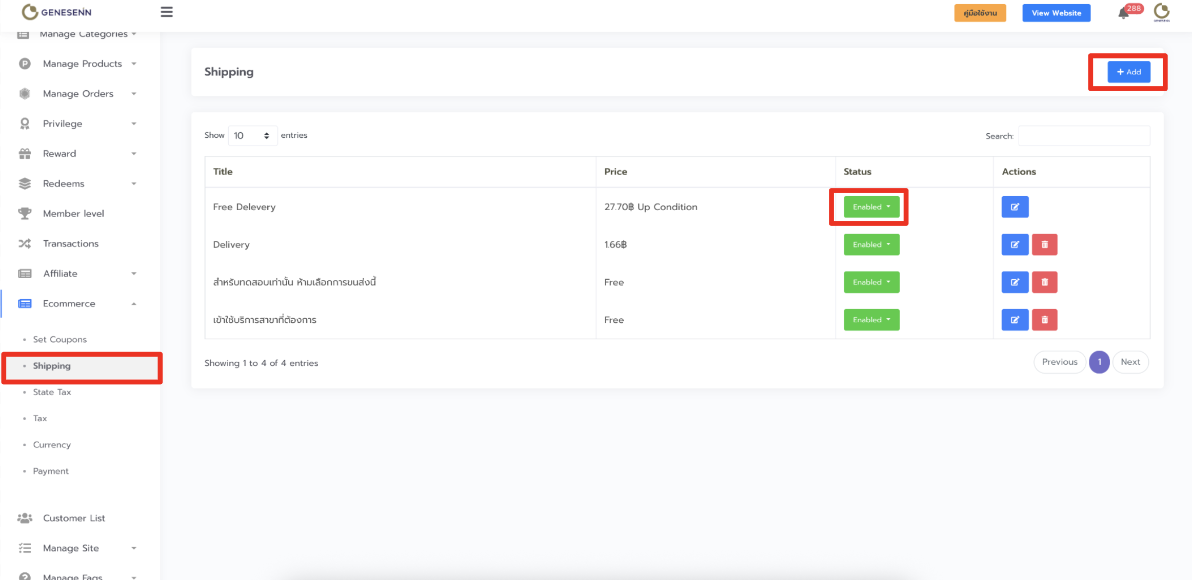 - กด Add เพื่อเพิ่มการจัดส่ง