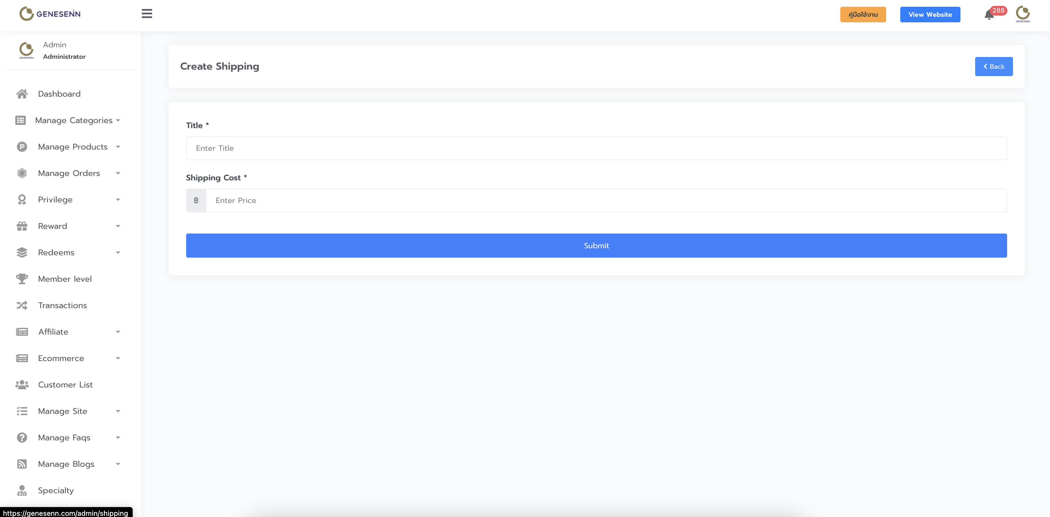 การจัดส่ง Shipping เข้าไปที่ คลิ๊กที่นี้
