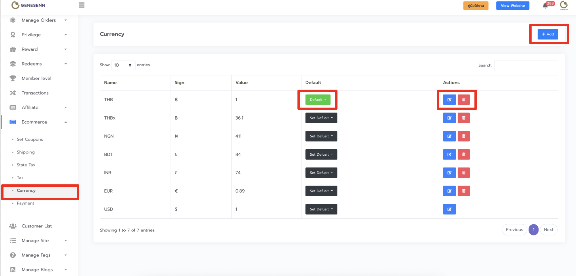- กด Add เพื่อเพิ่มสกุลเงิน