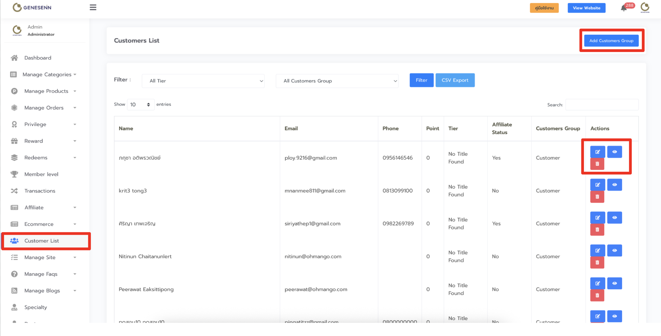 สามารถดูรายชื่อลูกค้าทั้งหมด ได้โดย