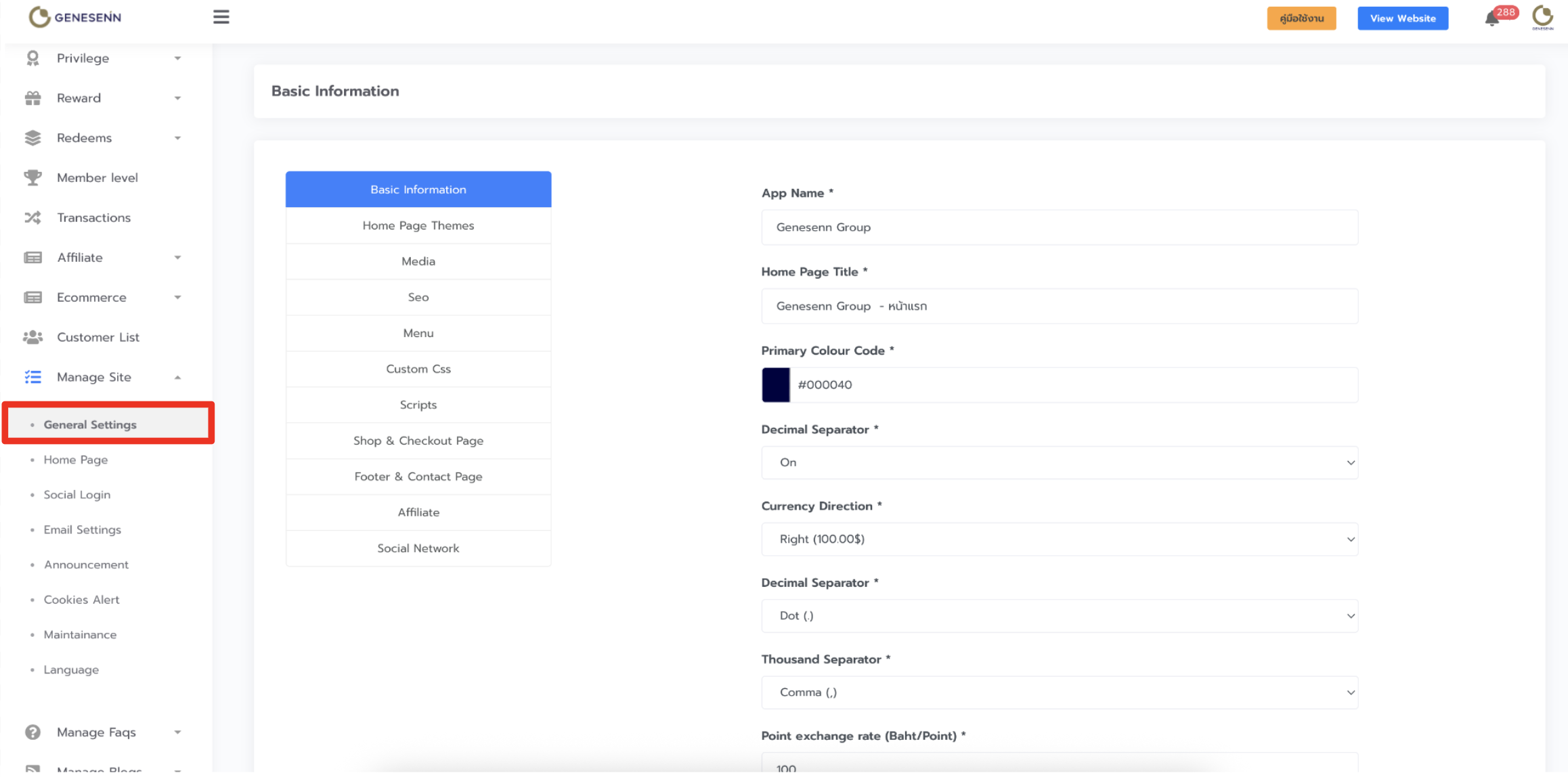 การตั้งค่าทั่วไป เข้าไปที่ คลิ๊กที่นี้