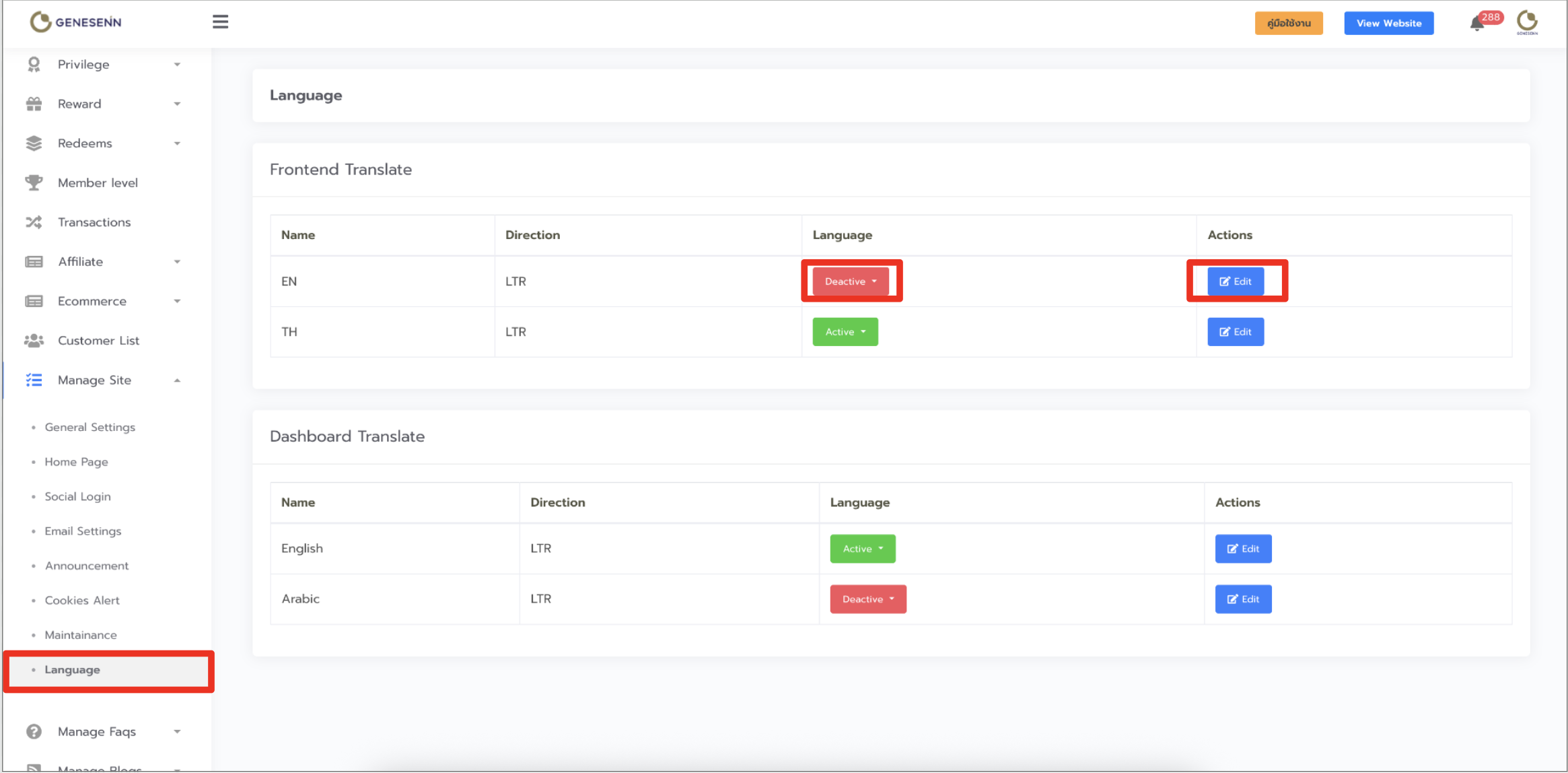 การตั้งค่าภาษาเพื่อใช้งานระบบ เข้าไปที่ คลิ๊กที่นี้