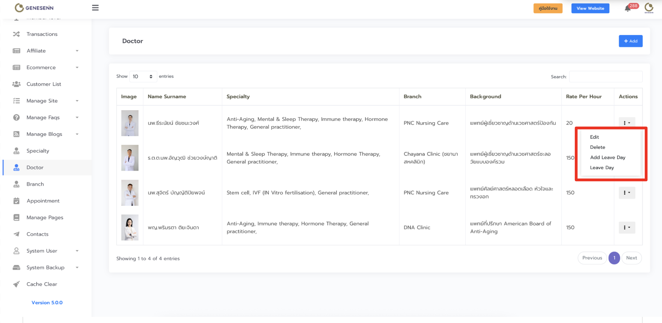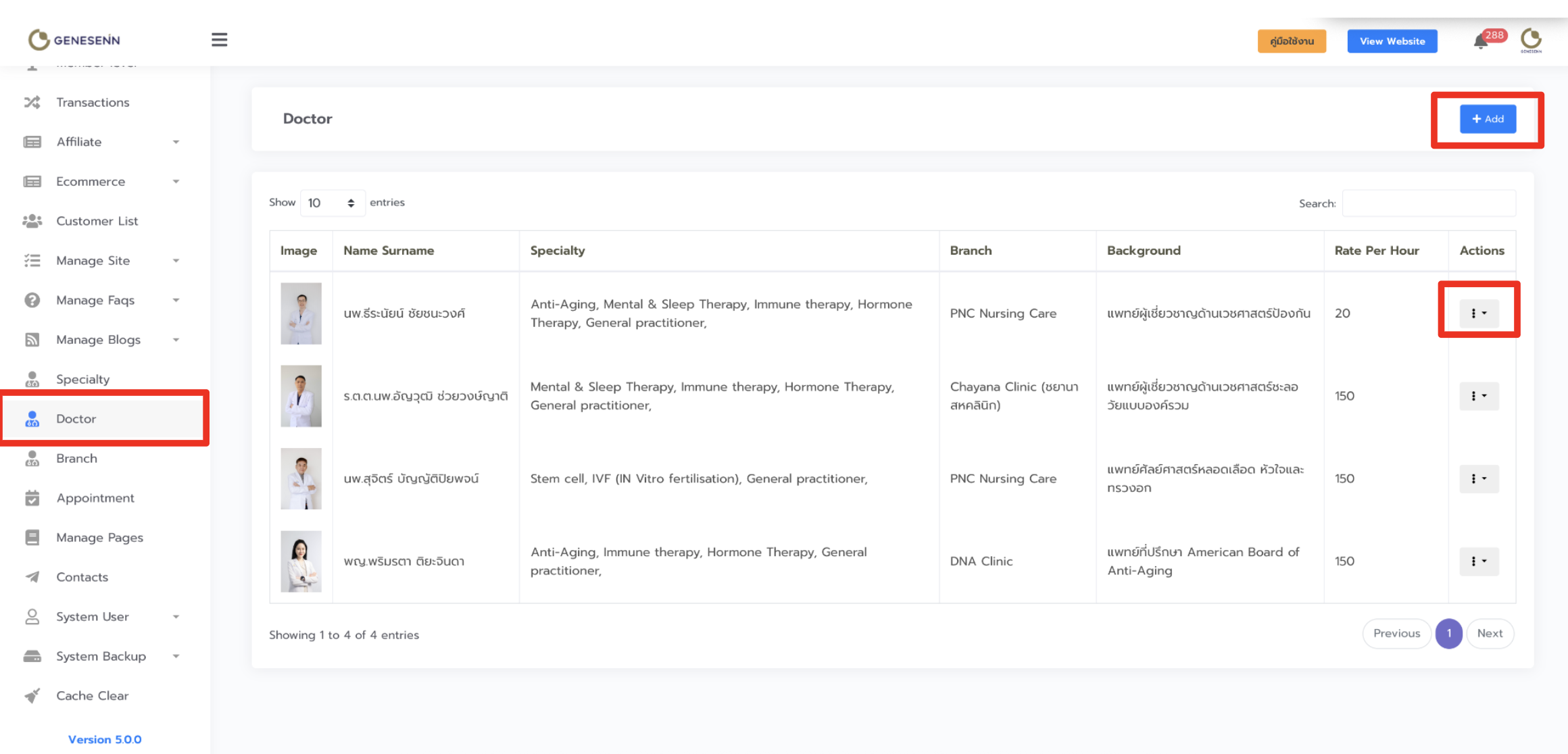 การเพิ่มรายชื่อแพทย์เข้าสู่ระบบ เข้าไปที่ คลิ๊กที่นี้
