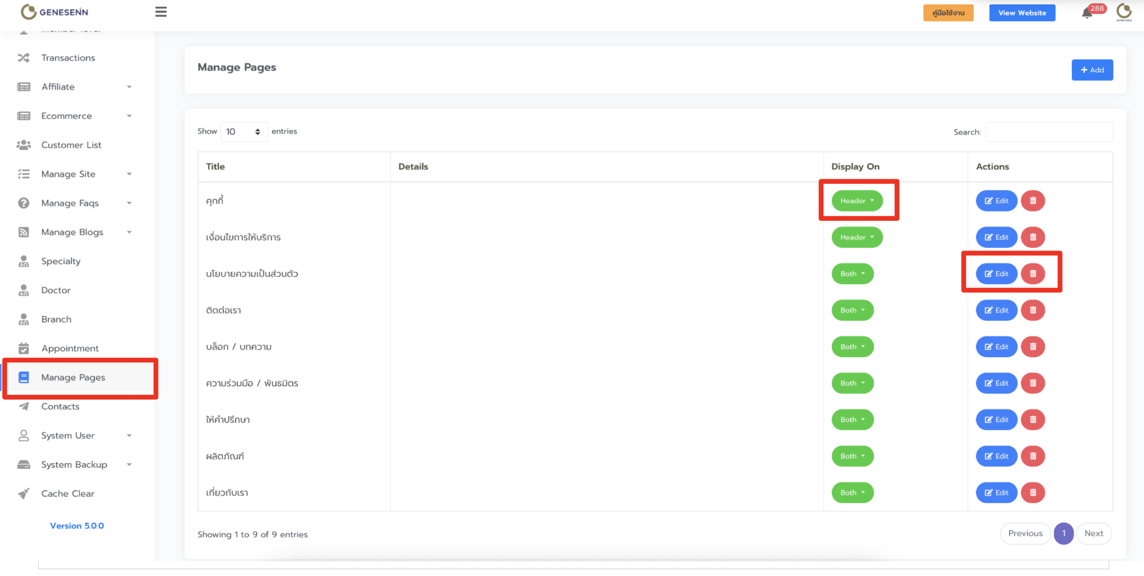 ตัวจัดการเพจ Manage Pages