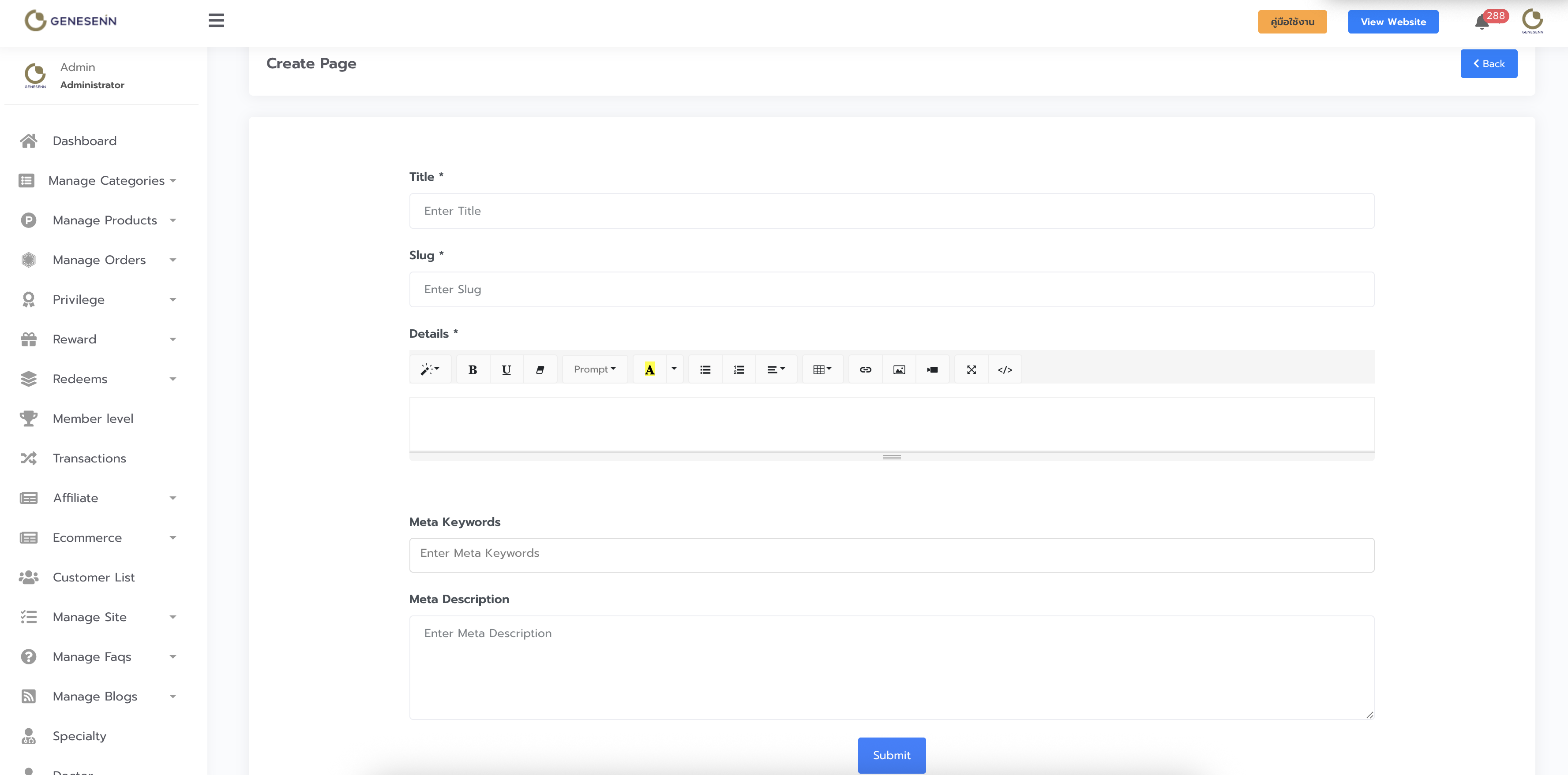 - เข้าไปที่โมดูล Manage Pages