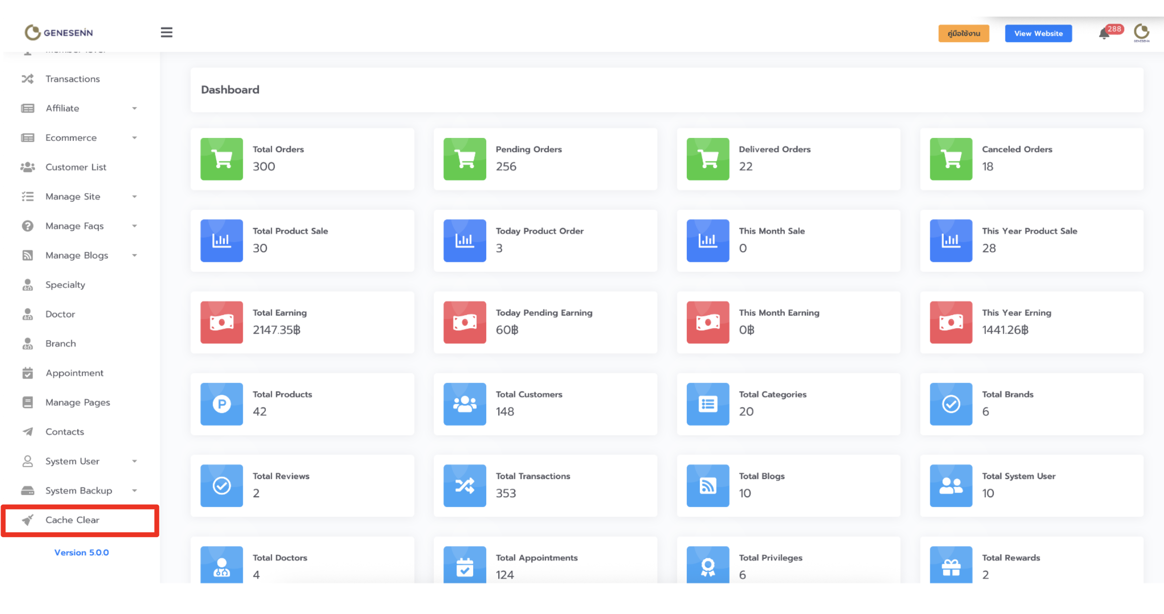 - กดคลิ๊ก เพื่อลบข้อมูลแคช Cache