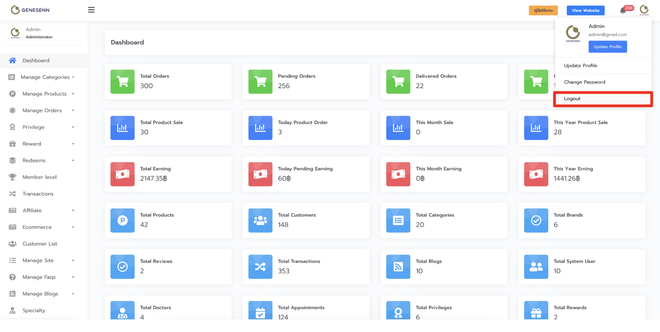 - กดเลือก Logout เพื่อออกจากระบบการใช้งาน