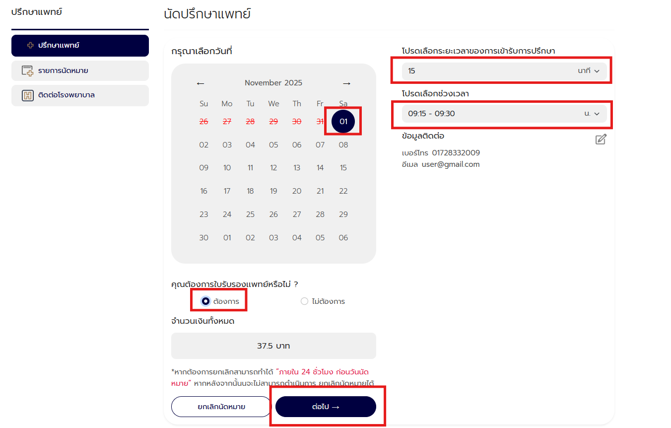 • เลือกนัดหมายแพทย์ที่ต้องการ