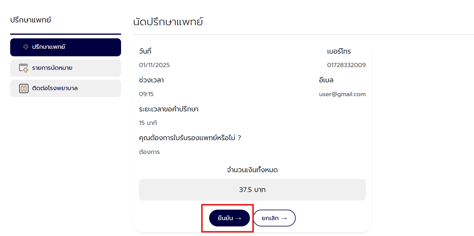 เสร็จสิ้นกระบวนการนัด รอการอนุมัติจากแพทย์