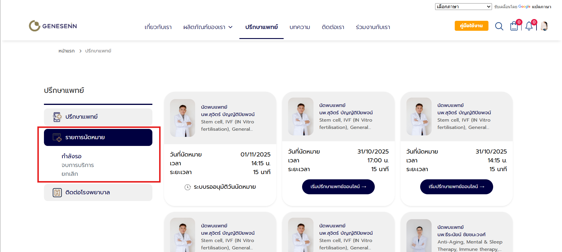 - เข้าไปที่เมนู ปรึกษาแพทย์
