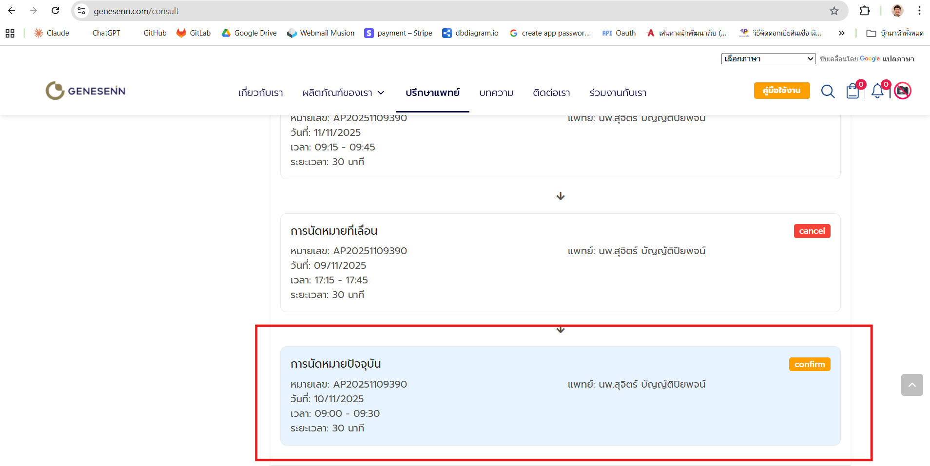การดูรายการและสถานะการนัดหมาย