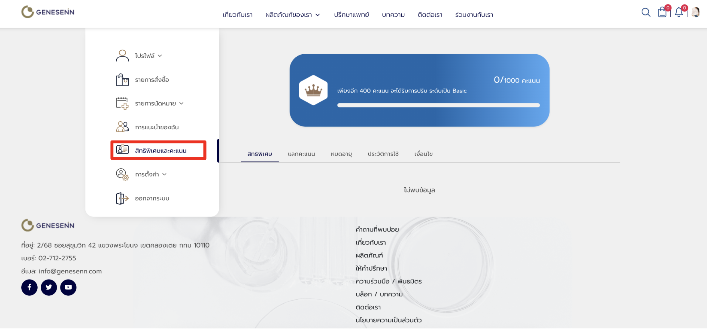 - เลือกคลิ๊กที่ สิทธิพิเศษแลกคะแนน