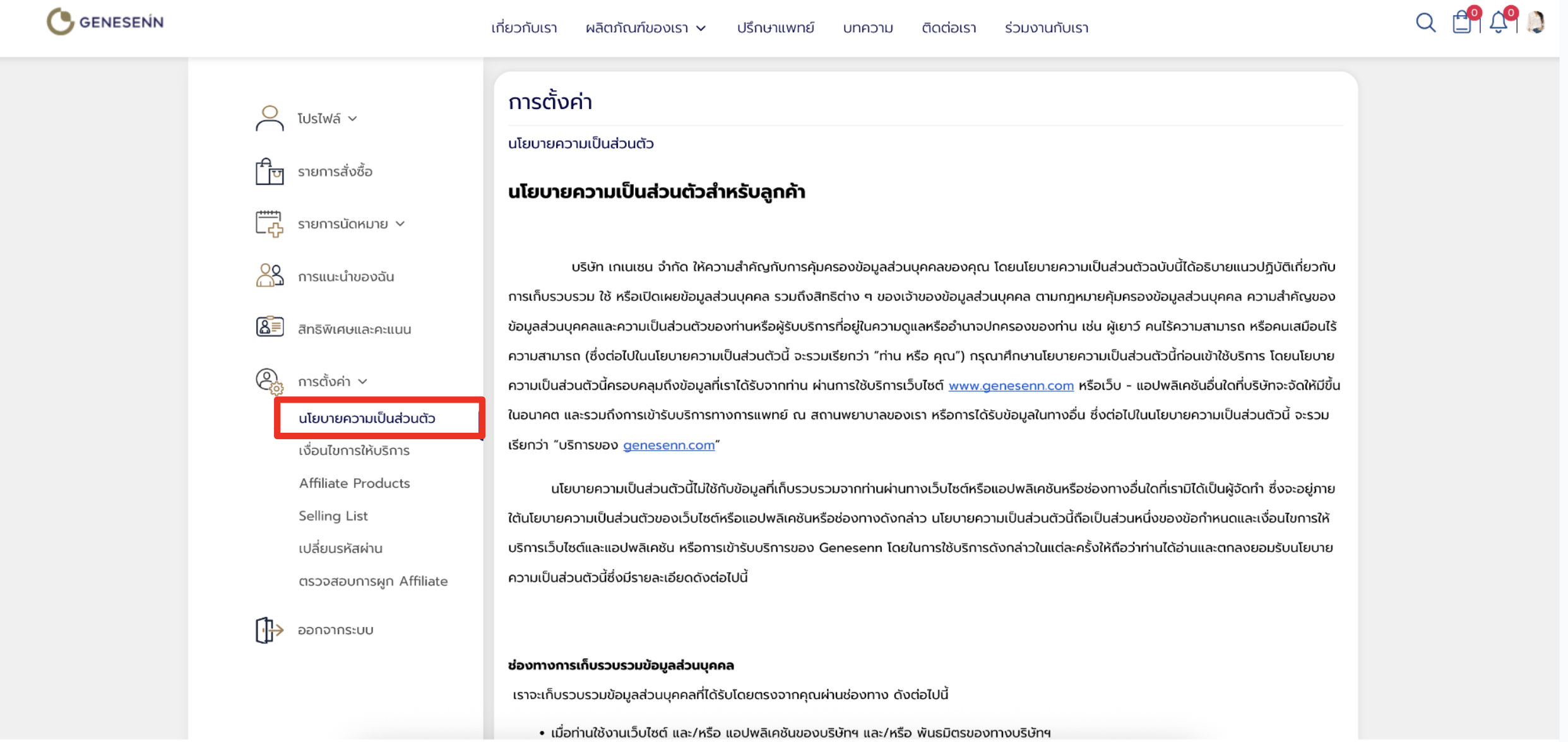 เข้าดูและตรวจสอบ การตั้งค่า นโยบายความเป็นส่วนตัว โดยคลิ๊กที่