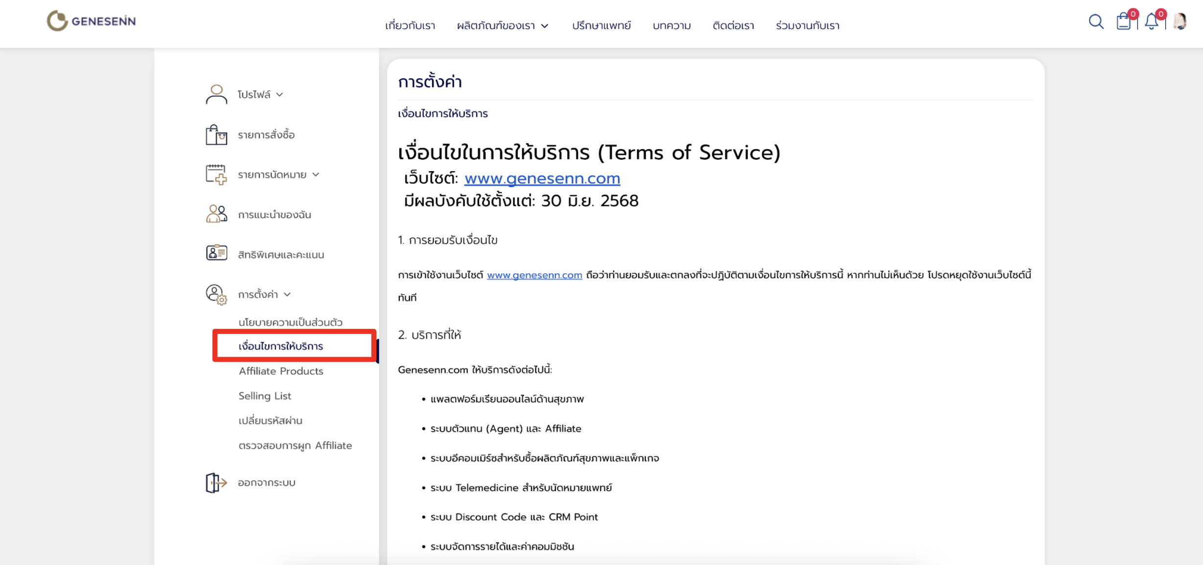 เข้าดูและตรวจสอบ การตั้งค่า เงื่อนไขการให้บริการ โดยคลิ๊กที่