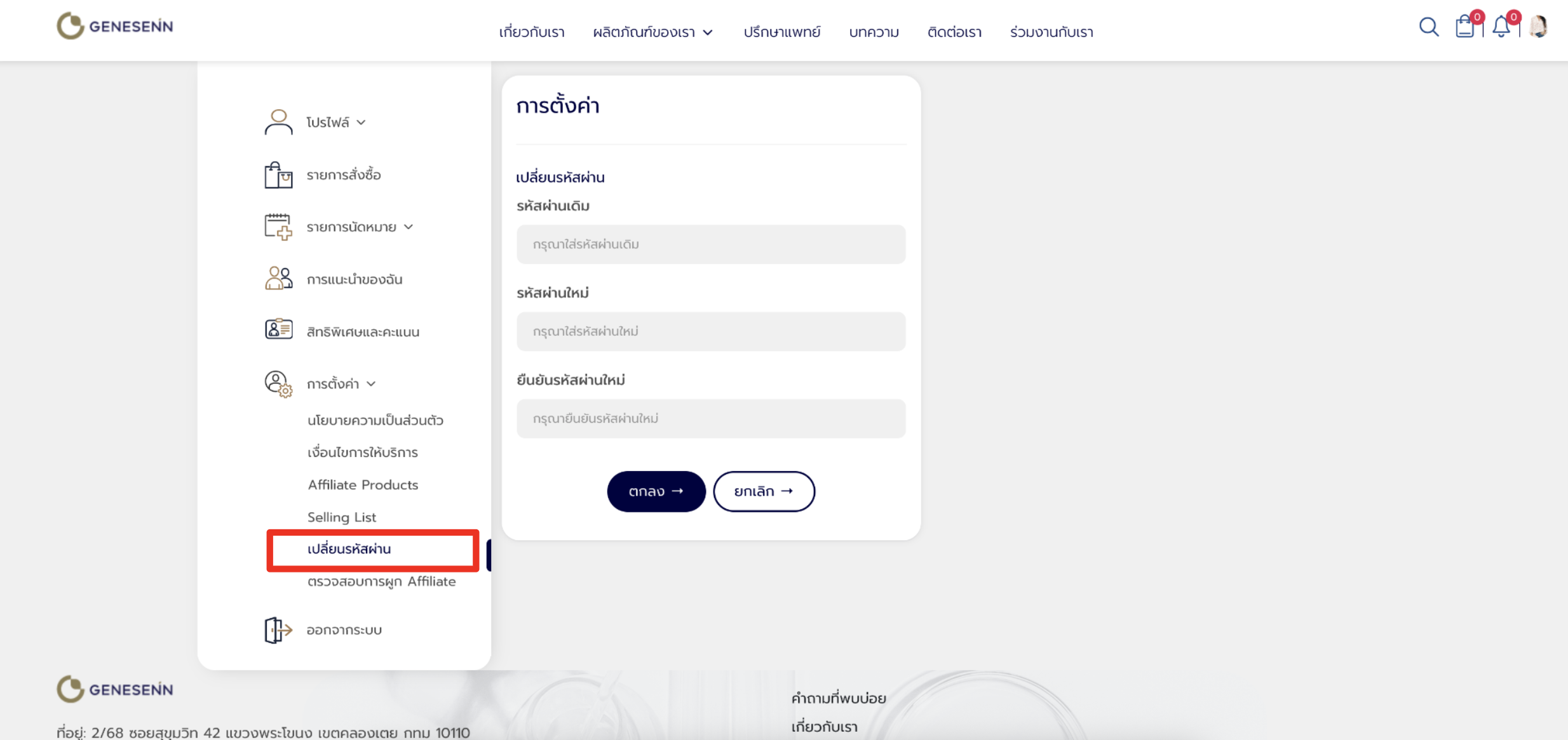 การตั้งค่า เปลี่ยนรหัสผ่าน Change password