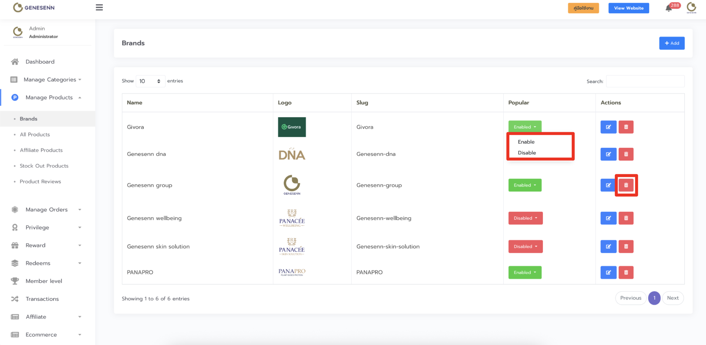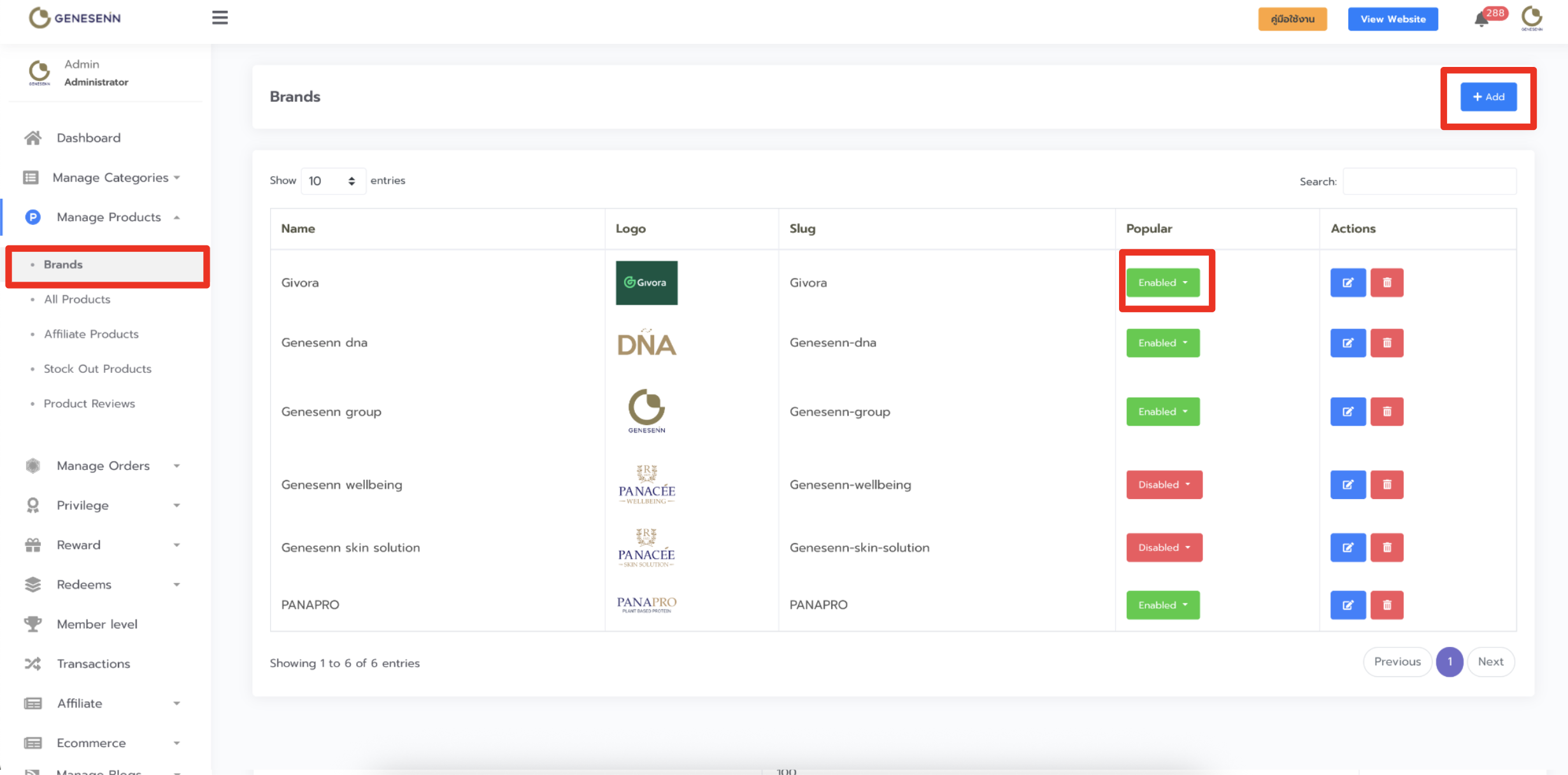 - กด Add เพื่อเพิ่ม Brands สินค้า