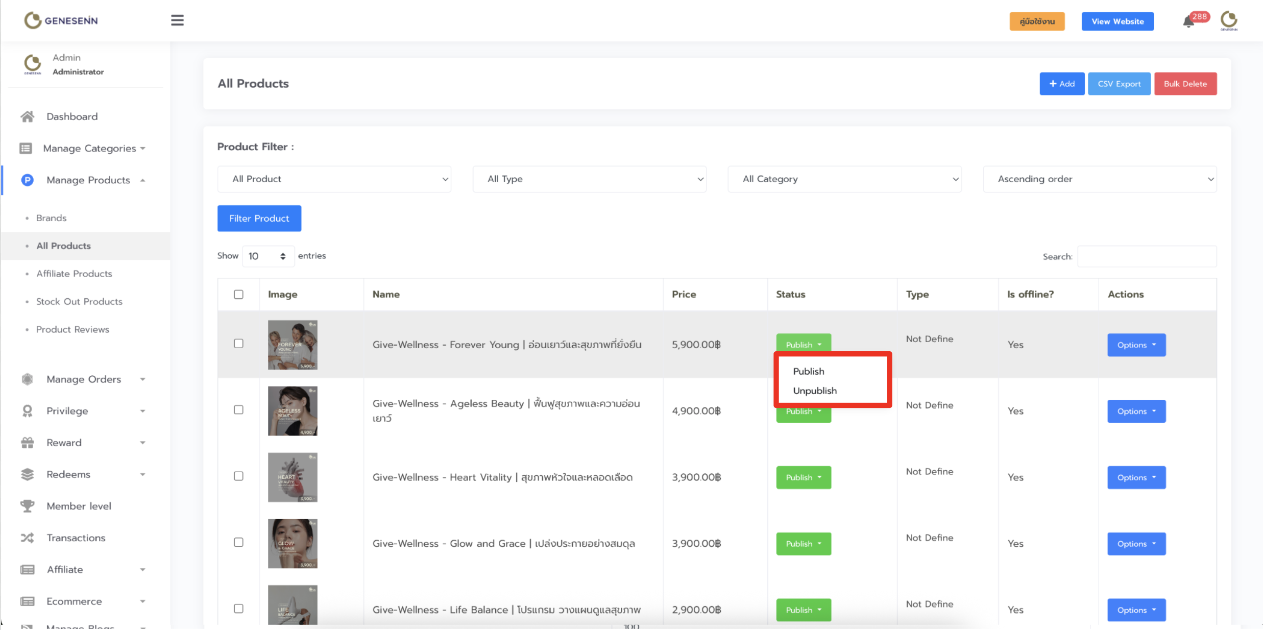 - ไปที่คอลัมน์ Status จากนั้นกดเลือก Public หรือ Unpublic