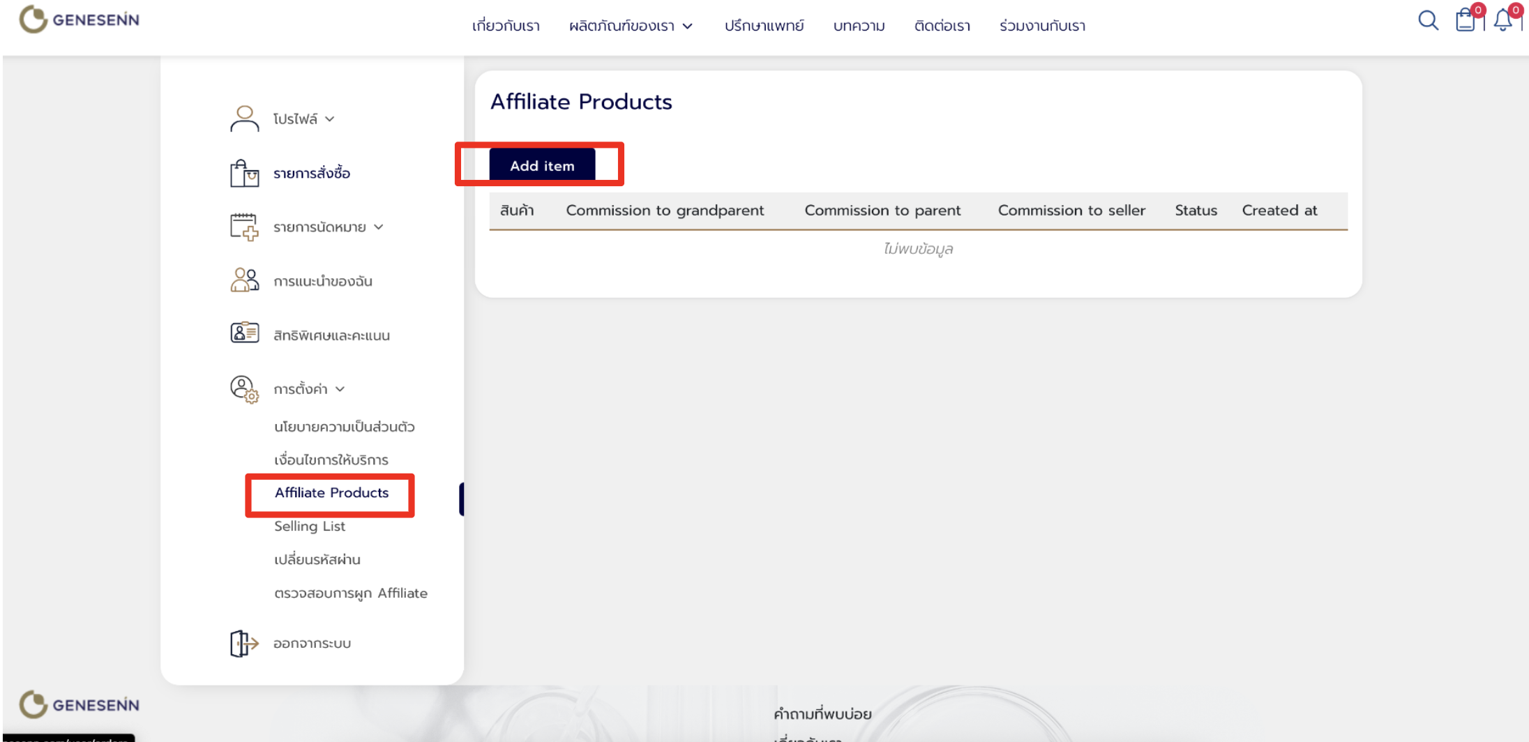- จากนั้น คลิ๊กเลือก Affiliate Products
