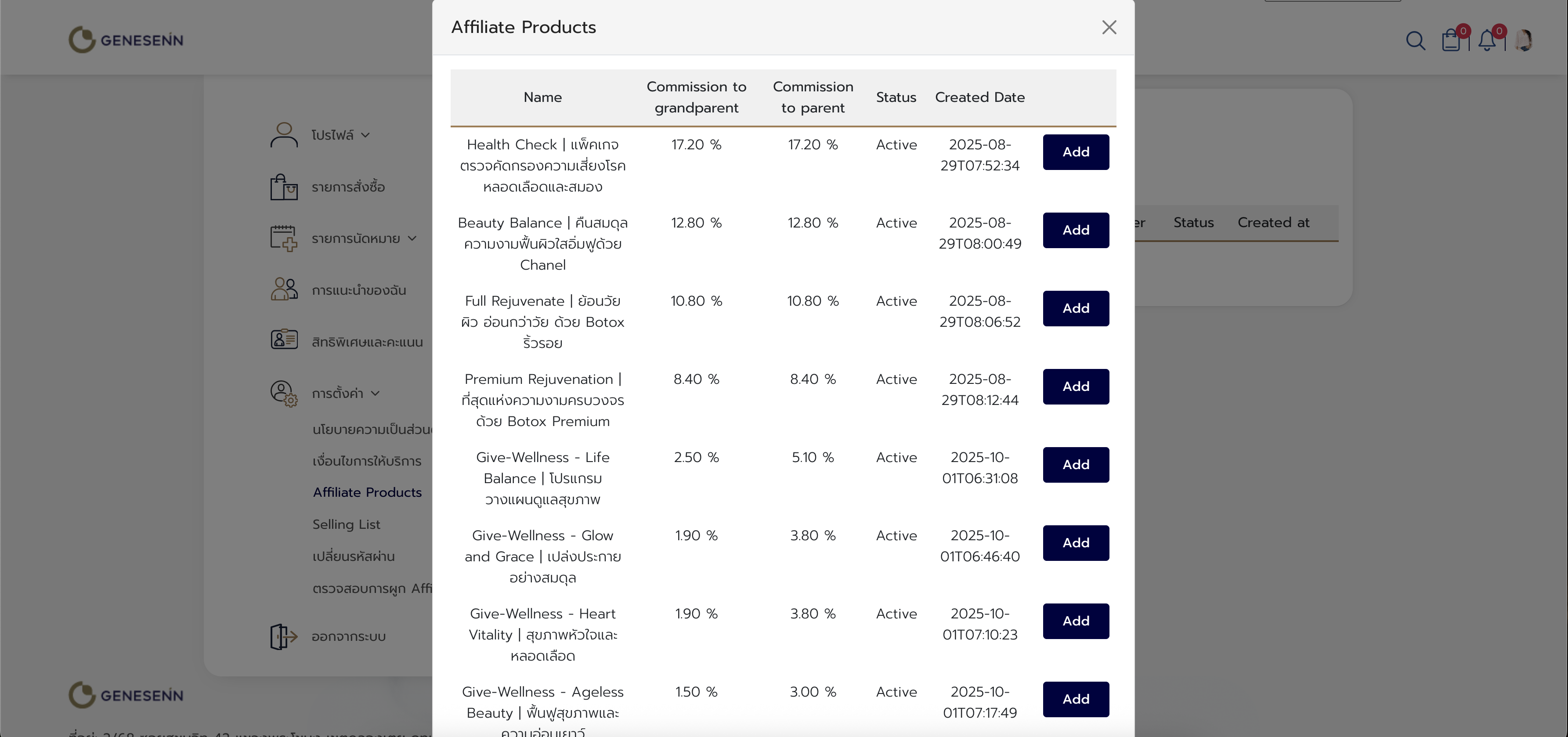 โดยในรายละเอียดของ Product จะแจกแจงค่า Commission เปอร์เซ็นต์ ดังรูปภาพตัวอย่าง